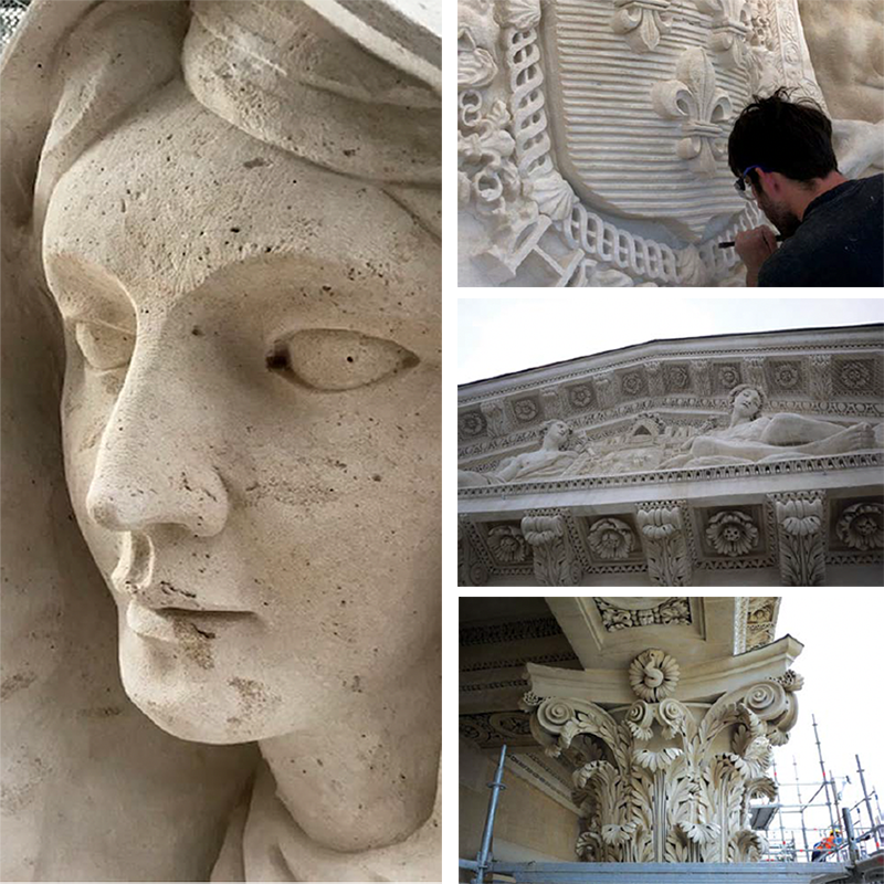 • Sculpture après usinage du blason du fronton coté champs de mars